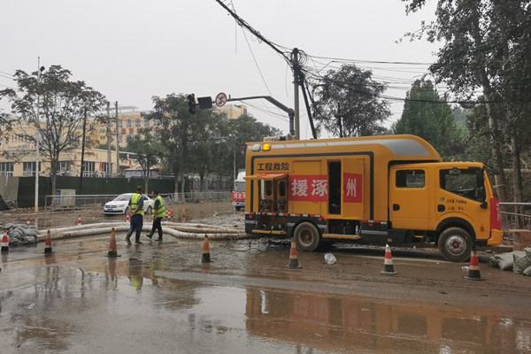 此次搶險救災,河北天元公司緊急調撥兩個班組人員,一臺大型排水泵車,一臺聯(lián)合吸污車,四臺檢測車等以及多臺地下管網(wǎng)探測檢測疏通清洗設備趕往涿州,對當?shù)氐叵屡潘芫W(wǎng)進行管線探測、抽水排澇、淤泥清洗、病害檢測等一系列專業(yè)化的檢測排查工作。在幫助緩解地下管網(wǎng)排水壓力的同時,為盡快恢復地下管網(wǎng)使用功能,幫助當?shù)厝嗣袢罕姳M快恢復正常生產(chǎn)生活。公司隊伍高度的責任感和專業(yè)化的施工能力受到了當?shù)夭块T的高度認可。
